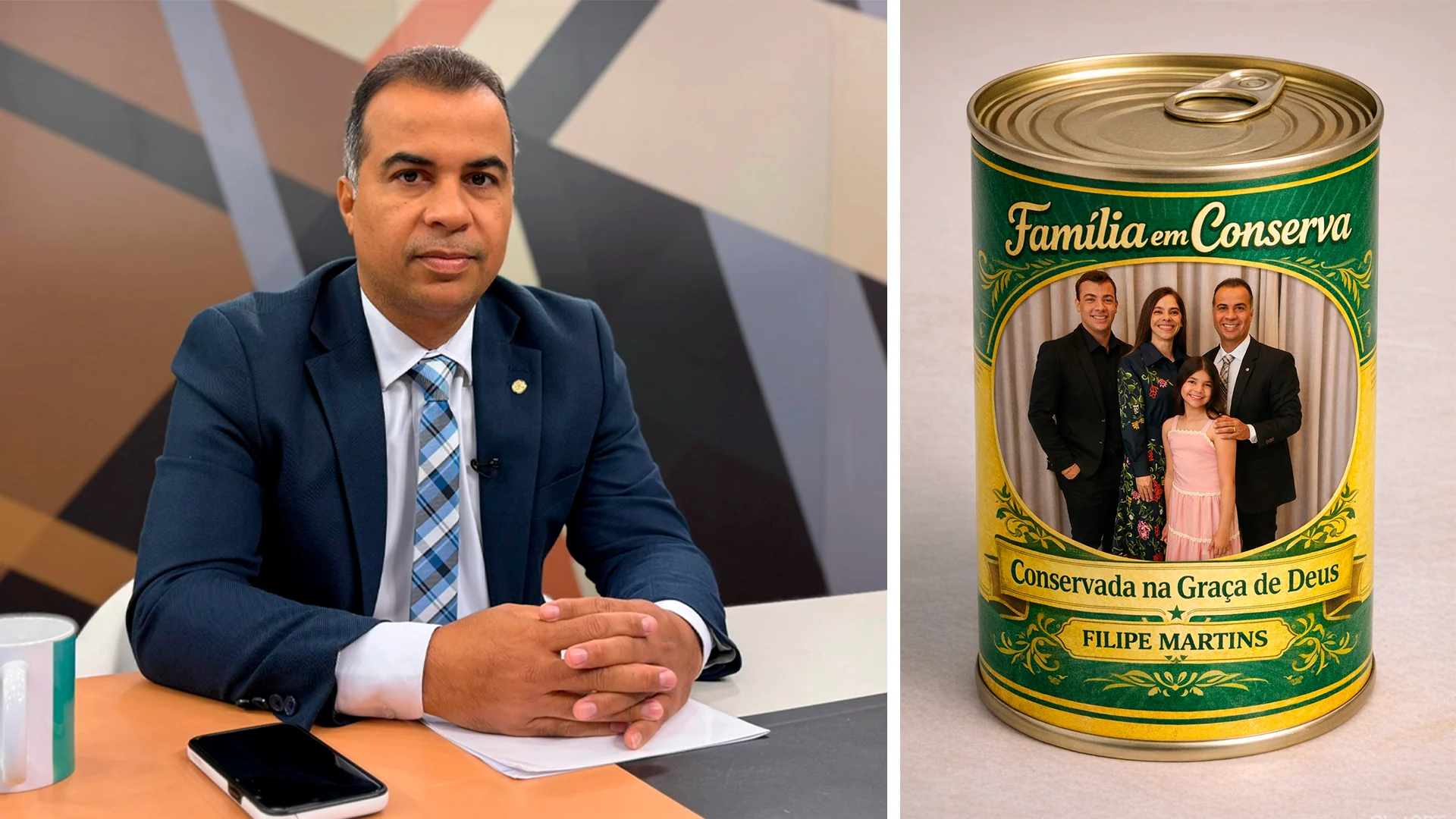 Como forma de manifestação, o deputado publicou uma imagem da própria família dentro de uma lata, acompanhada das mensagens: “Família em Conserva” e “Conservada na Graça de Deus”.