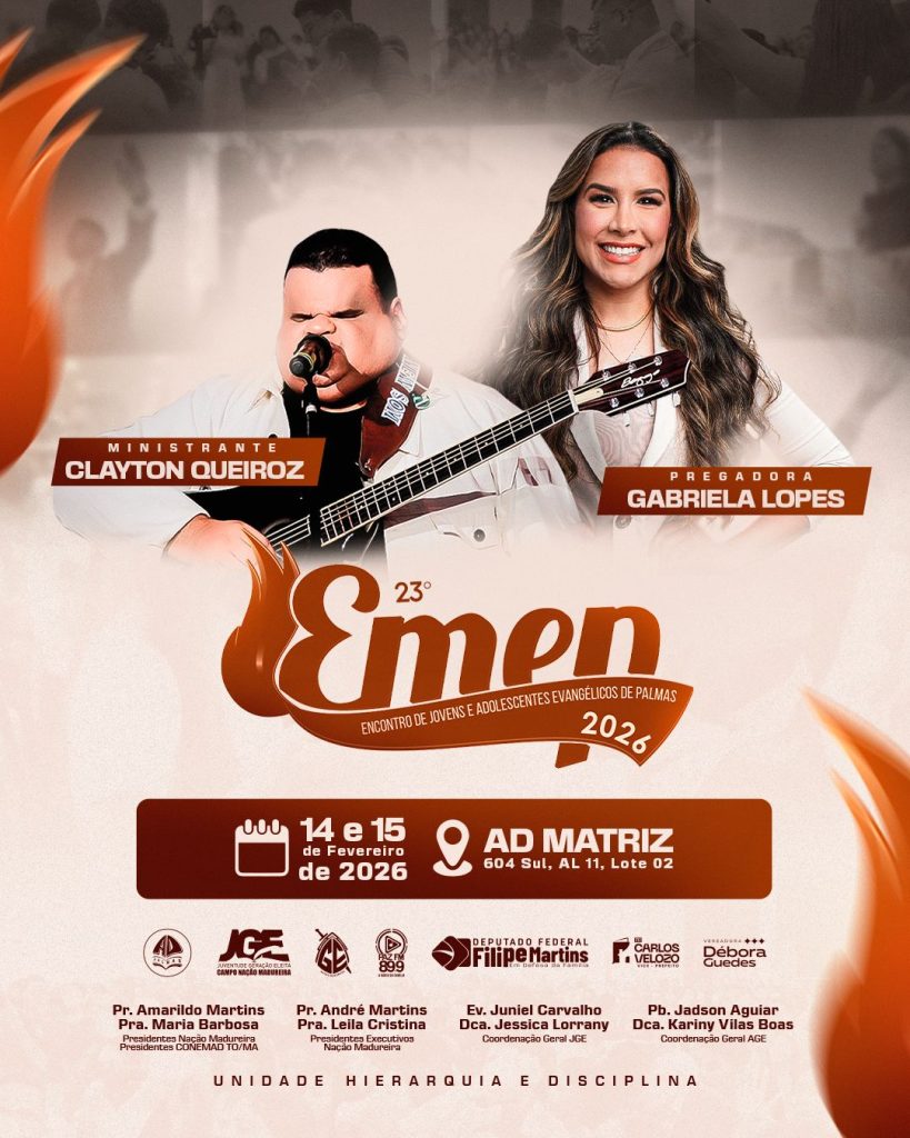 Programação contará com cantor Cleiton Queiroz, Banda Som e Louvor e a pregadora Gabriela Lopes A cidade de Palmas (Tocantins) receberá, nos dias 14 e 15 de fevereiro, a 23ª edição do EMEP – Encontro de Jovens e Adolescentes Evangélicos de Palmas, evento que já faz parte do calendário da igreja e se consolidou como […]