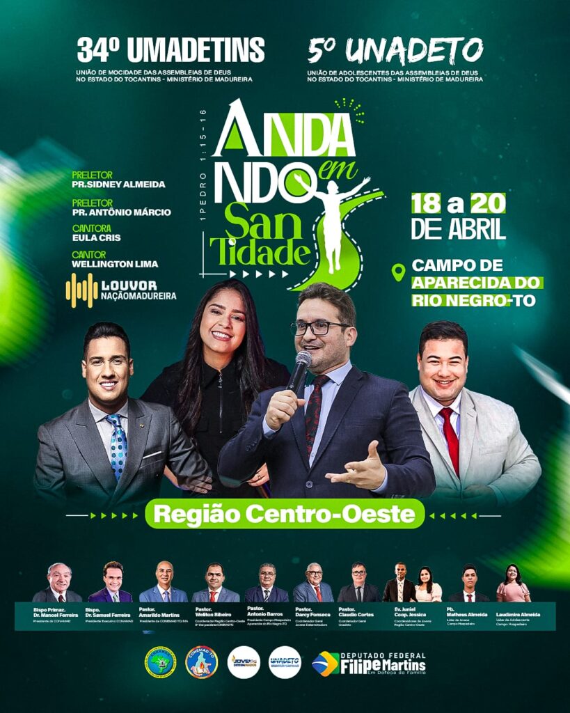 Neste feriado de 18 a 20 de abril, as cidades de Taguatinga, Alvorada, Araguaína, Colinas, Tocantinópolis e Aparecida do Rio Negro recebem o 34º UMADETINS (União de Mocidade das Assembleias de Deus no Estado do Tocantins) e o 5º UNADETO (União de Adolescentes das Assembleias de Deus no Estado do Tocantins). Com o tema “Andando […]