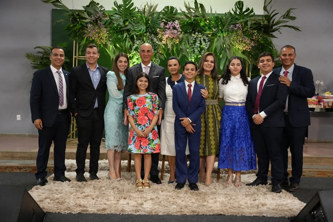 A celebração contou com a presença ilustre do prefeito de Palmas, Eduardo Siqueira Campos, e da primeira-dama Poliana Siqueira, que se uniram à igreja para render graças pela trajetória da pastora.